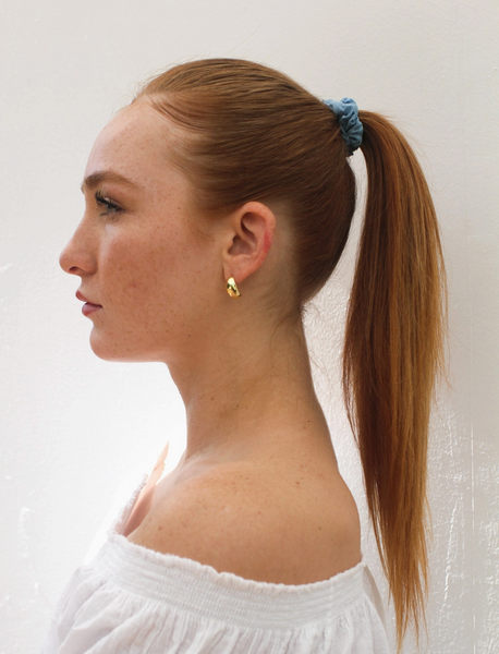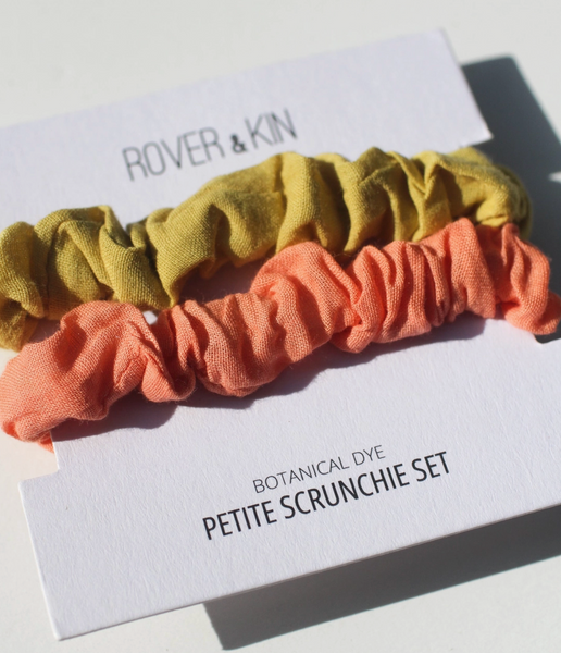 Dress up that ponytail with our petite scrunchie! You'll be surprised how well these little scrunchies hold up hair with just the right amount of elasticity, securing a high and tight ponytail even with the thickest of hair! We love the color ways of these botanically dyed scrunchies.
