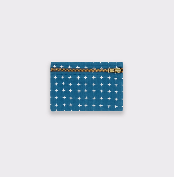 This cute coin purse is perfect to store loose change, business cards or even your headphones. Handmade from organic cotton, each zippered coin purse is accented with tiny cross stitch.