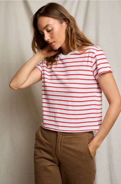 The everett tee is your favorite silhouette with clean lines, a relaxed shape, and bold stripes that bring the whole look together. your new signature styling piece.