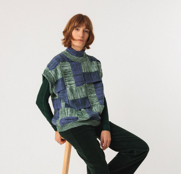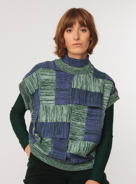 Tricot strips sweater. Ribbed collar. Sleeveless. Heavy weight. Collaboration with Martina Spetlova.