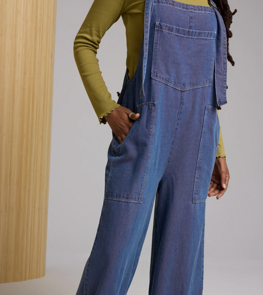 Playful, roomy, adjustable... these are only a few of the adjectives that could be used to describe this lovely new organic cotton overall, but they are not the only ones. We'd add cute, comfortable, and "everyday-wearable-until-the-end-of-time'.