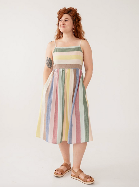 This midi dress is a proven favorite, featuring a small-batch yarn-dyed textile that brings a rich, layered depth of color that looks like it has a history. A keyhole button detail at the back adds a considered finishing touch, while hidden pockets keep things practical.
