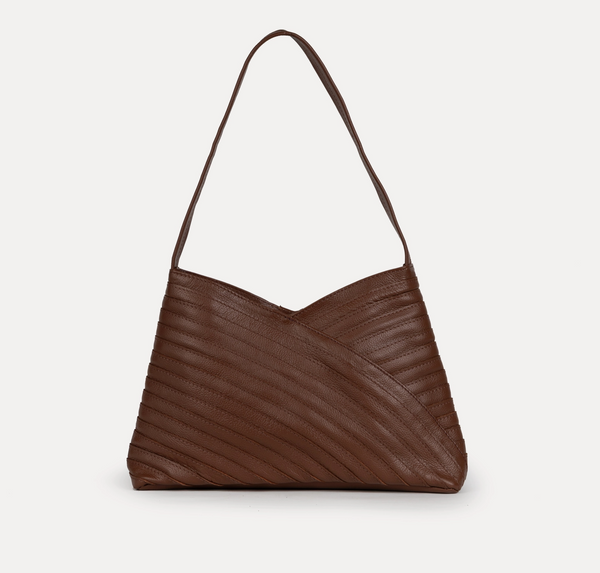 The Crisscross Shoulder Bag was created to make use of leftover strips of leather. This bag was one of those moments where the challenge of creating with what the earth has already given us resulted in something magical. The generous interior is fully lined with hand block printed cotton canvas and features one zipper pocket and one slip pocket, all safely secured with a magnetic closure.