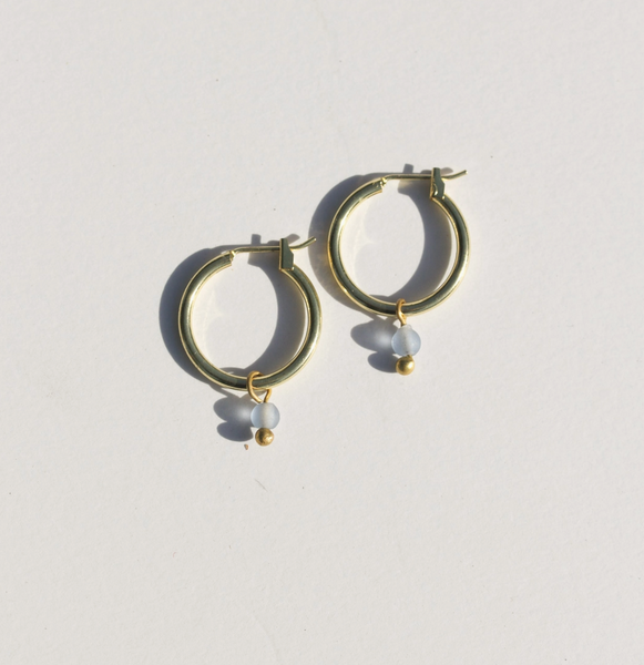Sea Glass Huggies feature frosted glass beads with a minimalist hoop design. Inspired by the ethereal beauty of the NorCal coastline, these hoops captures the soft hues and delicate splendor of the majestic seascape we call home.