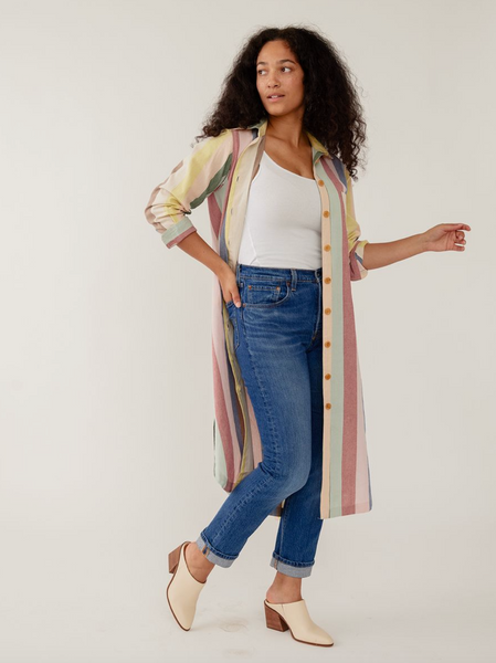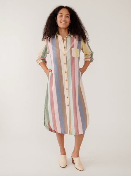 Channel relaxed 1970s sophistication in this midi-length button-up shirtdress features a bold navy yellow plaid, a curved hem, and hidden pockets. The vintage-inspired relaxed fit features optional belt styling that creates a defined waist, in a versatile winter-weight cotton twill.